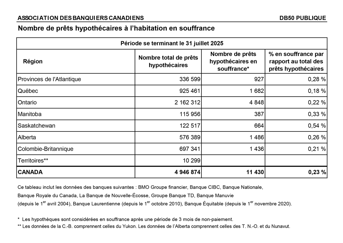 Tableau : Prêts hypothécaires à l’habitation en souffrance - juillet 2025